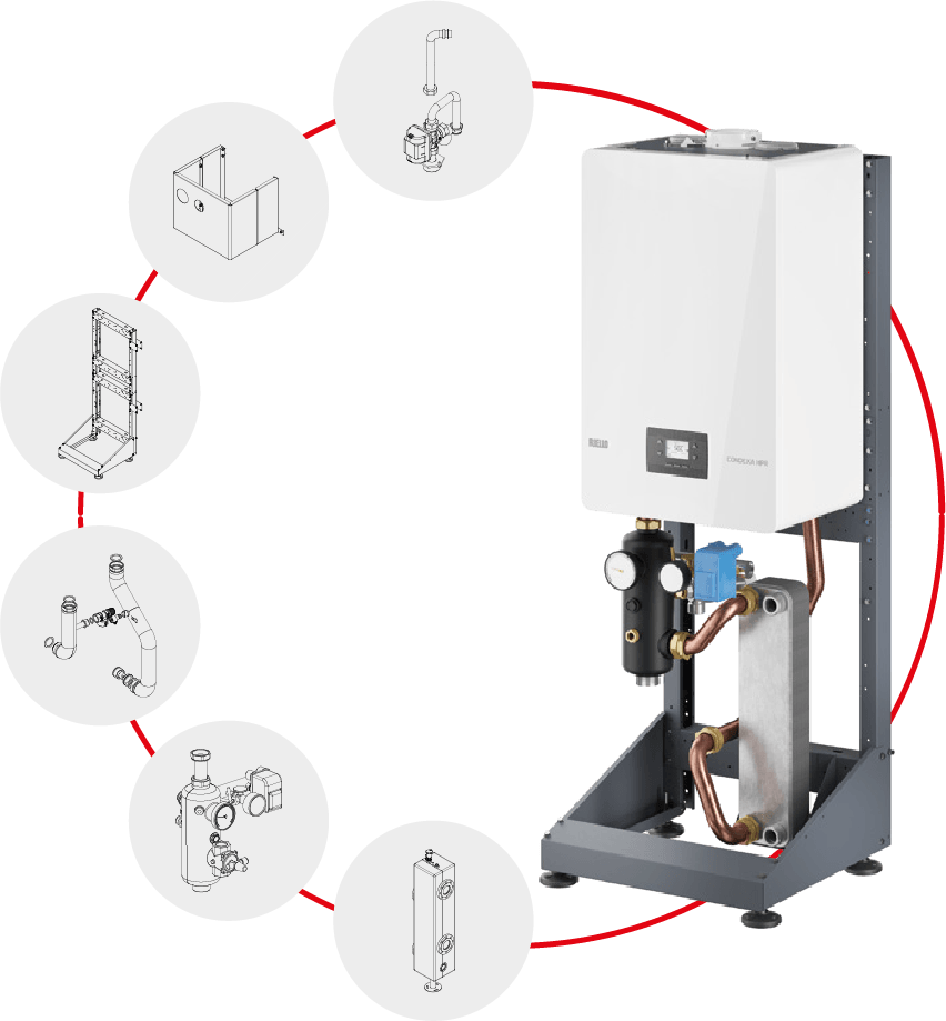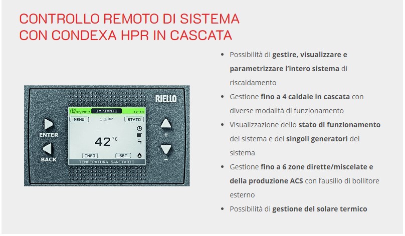CON CONDEXA HPR, RIELLO ALLARGA LA PROPOSTA MURALE NEL SEGMENTO PROFESSIONALE, INTRODUCENDO UNA GAMMA IN GRADO DI ASSICURARE FLESSIBILITA’ D’INSTALLAZIONE, MASSIMIZZANDO LA COMPATTEZZA DEL SISTEMA. CON UNA GAMMA DI 4 MODELLI SI POSSONO REALIZZARE 28 SOLUZIONI CONFIGURATIVE, PER RISPONDERE ALLE PIU’ SVARIATE ESIGENZE DI SPAZIO DEL LOCALE TECNICO