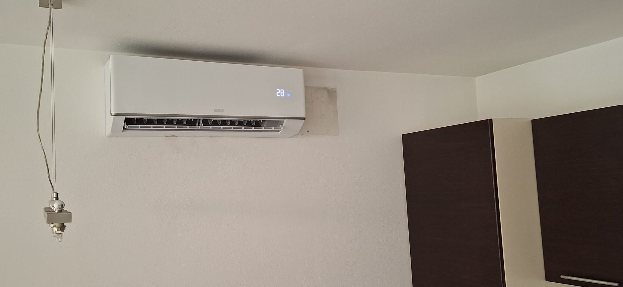 Il nuovo climatizzatore scelto è un modello Riello AARIA Start, noto per le sue prestazioni elevate e il consumo ridotto. L’installazione è stata completata rapidamente e in sicurezza, garantendo una perfetta integrazione con l’ambiente domestico.